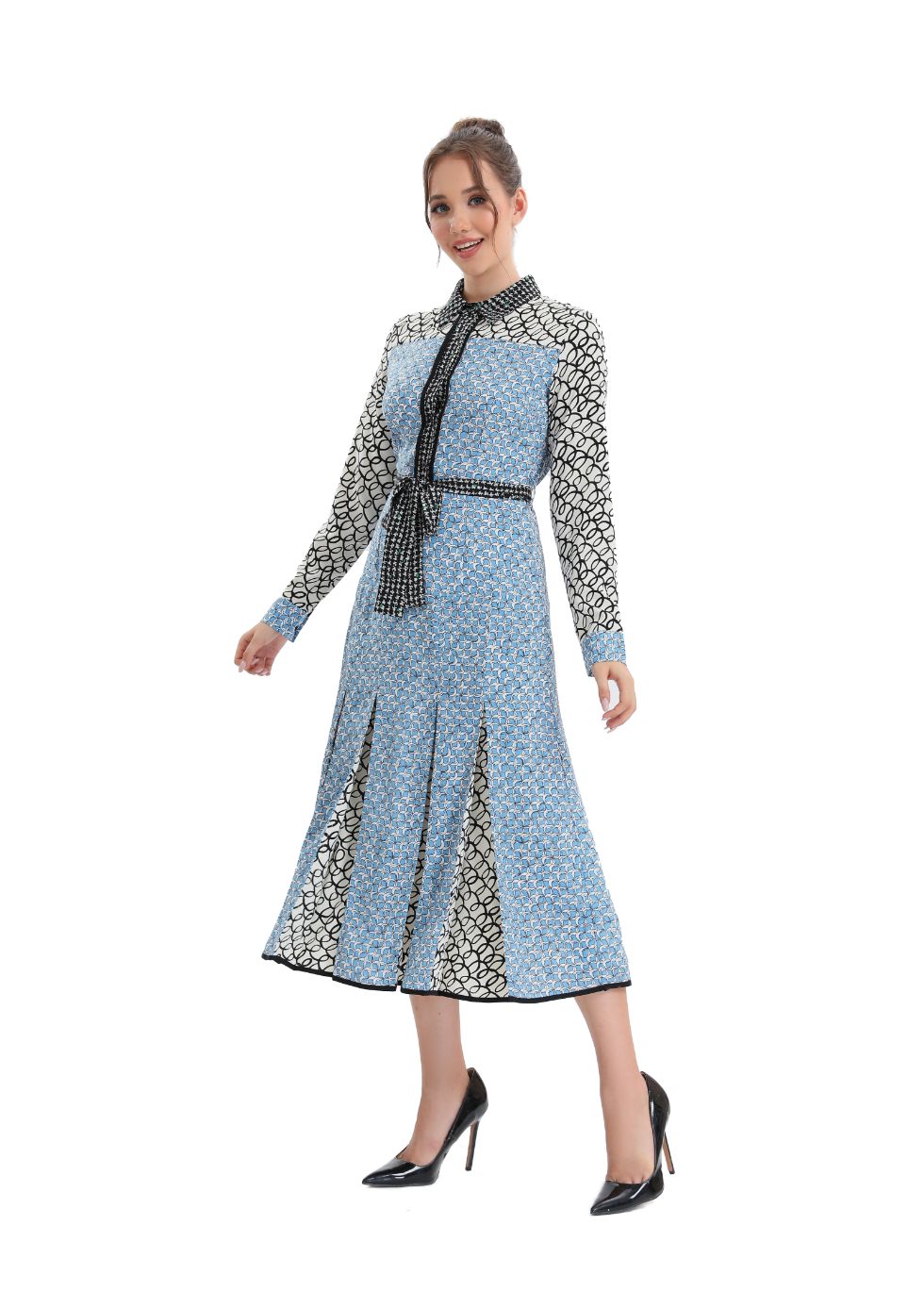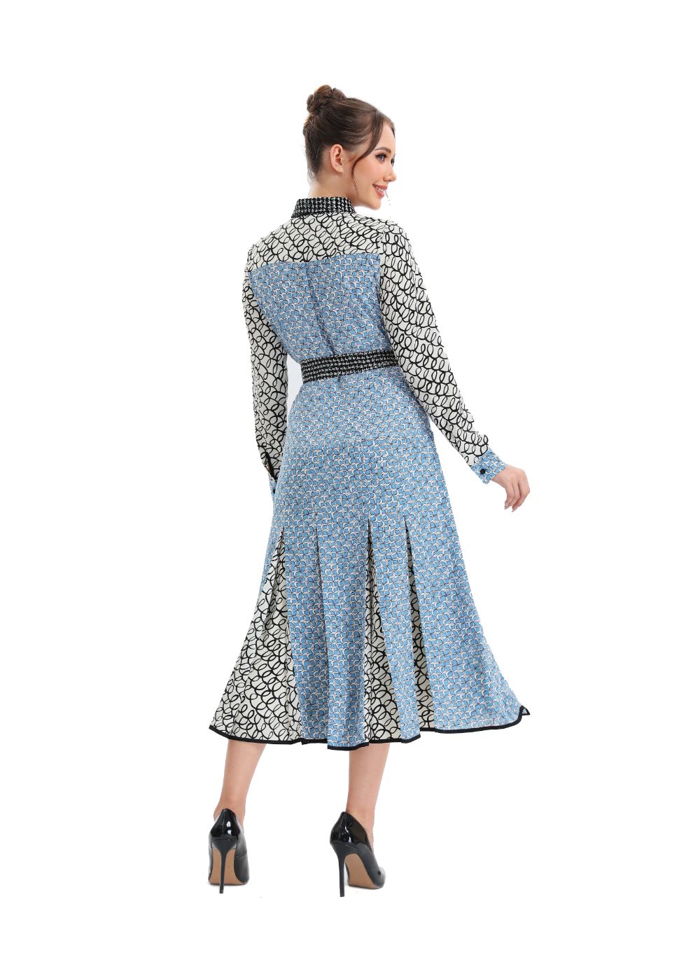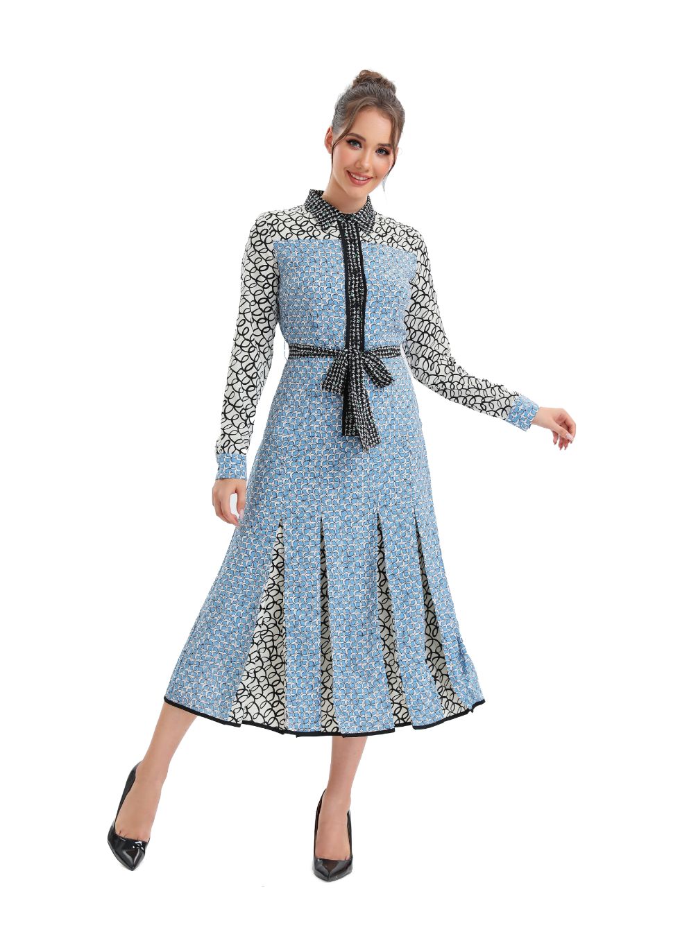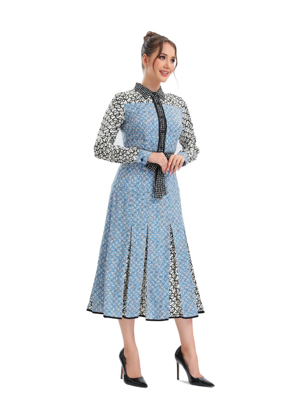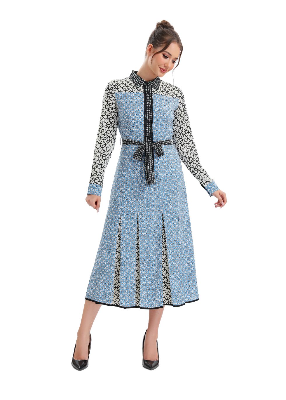 Look stylish and feel confident in this sky blue, button up?midi dress! Perfect for all occasions, this high-quality dress has a modest yet fashionable look, with a round neckline, long sleeves, and a skirt that falls below the knee. Look and feel amazing!?