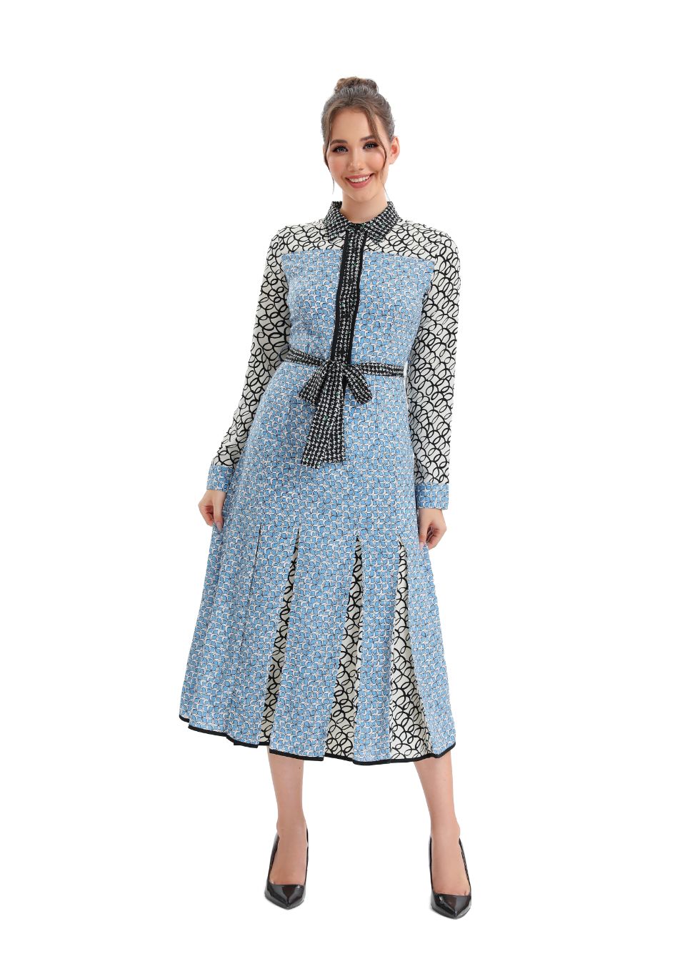 Sky Blue Pleated Midi Dress with Self Tie